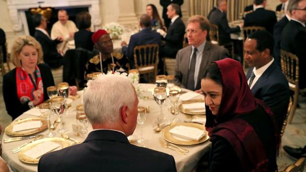 Para Duta Besar dari berbagai negara dan anggota korps diplomatik yang mewakili negara-negara yang mayoritas penduduknya muslim, hadir dalam acara buka bersama ini. Jajaran pejabat pemerintahan Trump juga turut hadir.